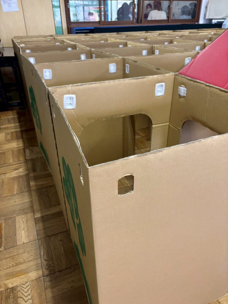 年に一度のお祭り&バザーの一区画でダンボール迷路。